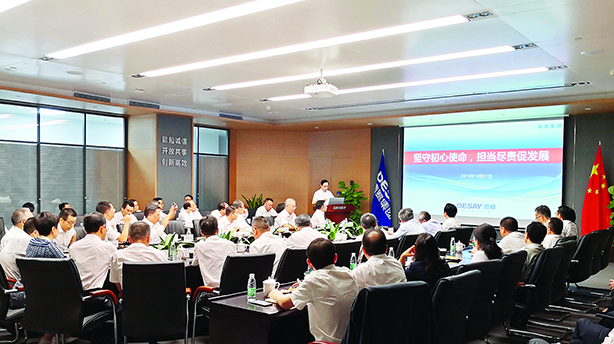 姜总强调,新形势下,习近平新时代中国特色社会主义思想对国有企业改革创新、制造业升级、实体经济发展等工作具有重要的现实指导意义。集团按照中央决策部署和上级统一安排、指导,扎实开展“不忘初心、牢记使命”主题教育,要把贯彻新发展理念、推动转型升级和加强党的建设这三个方面作为着力点,坚定不移地抓紧抓实抓好。